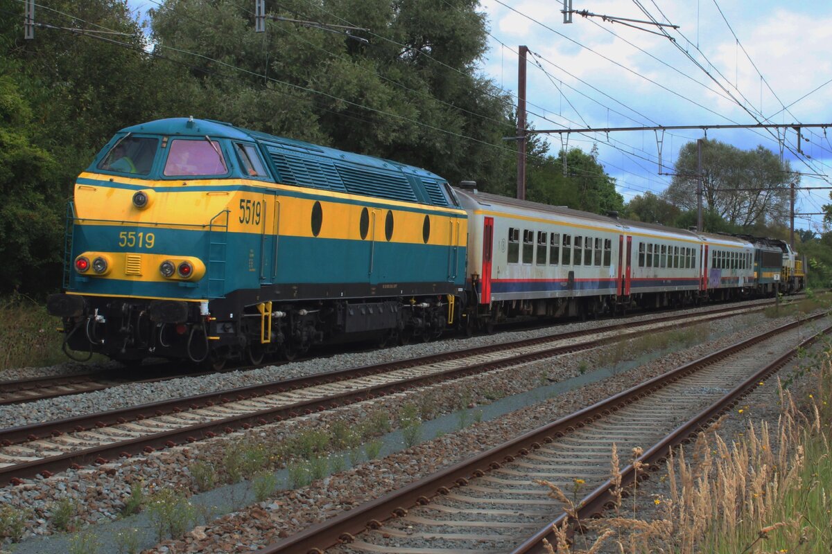 PFT-TSP 5519 schiebt am 17 Augustus 2024 ein Sonderzug durch Saint-Ghislain und wird von das Museumsgelände von Retrotrain fotografiert. Leon Schrijvers