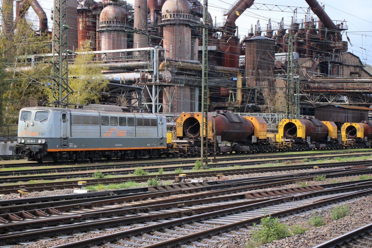 SRI: Die 151 124-5 (ehemals DB) mit dem Originalanstrich wartete am 30. Oktober 2015 in Weil am Rhein auf ihren nächsten Einsatz.
