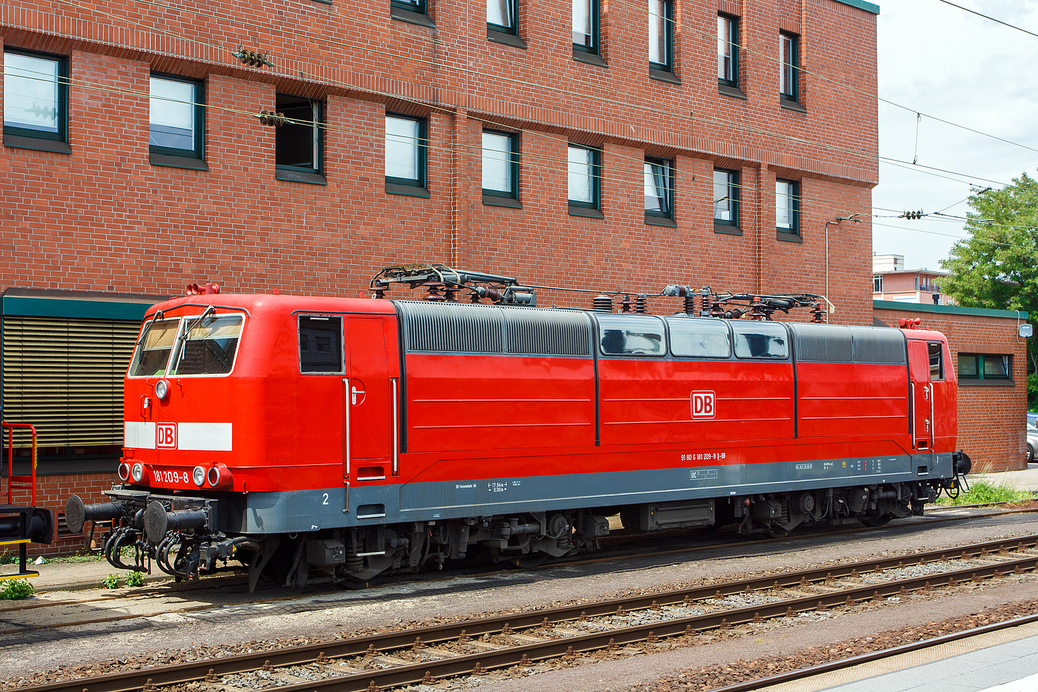 Die 181 209-8 (91 80 6181 209-8 D-DB) und die 181 211-4 "Lorraine" (91 80 6181 211-4 D-DB) beide von der DB Fernverkehr AG stehen am 17.06.2016 in Frankfurt am Main. Das Bild konnte ich aus einem ICE heraus machen.