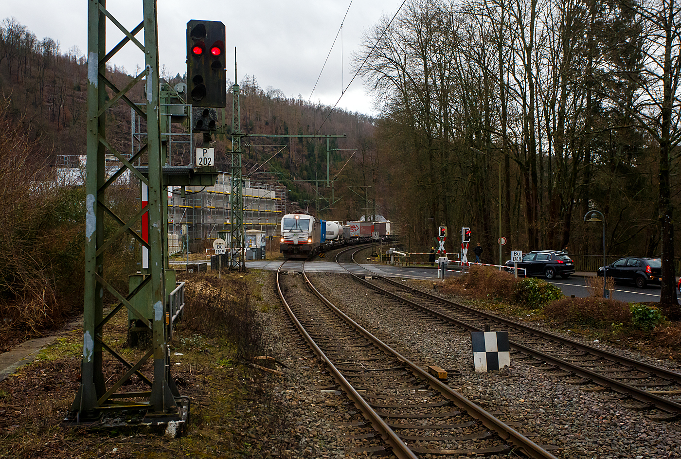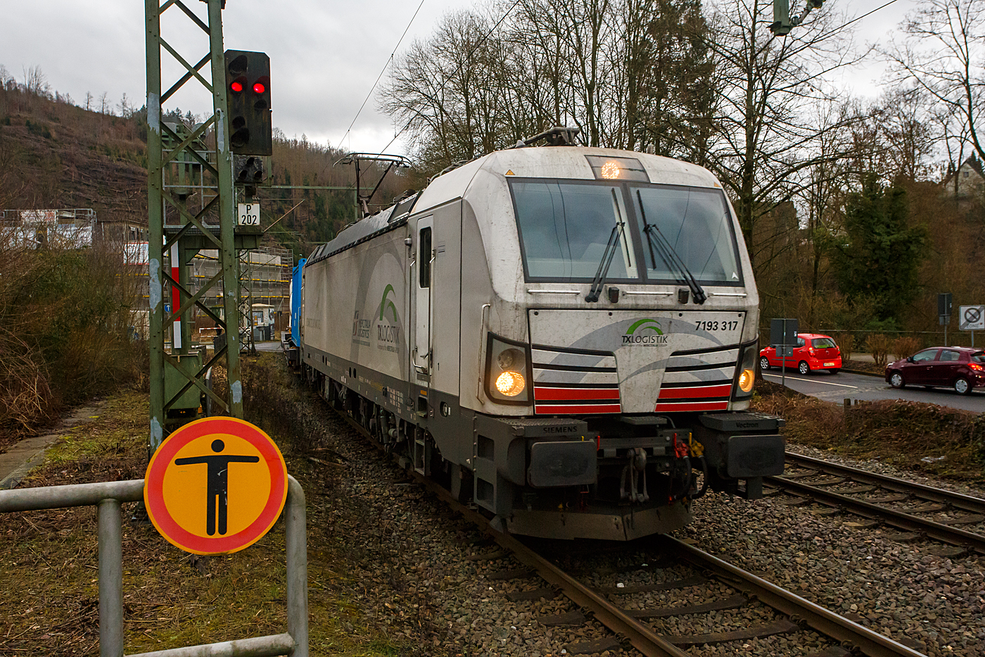 Die eigentlich weiße TXL 7193 317 „Connected to Nature“ (91 80 7193 317-3 D-TXL) der TXL - TX Logistik AG (Troisdorf) fährt am 15 Januar 2026 mit einem KLV-Zug durch Kirchen/Sieg in Richtung Siegen. Die SIEMENS Vectron MS (X4E) wurde 2024 von Siemens Mobility in München-Allach unter der Fabriknummer 24281 gebaut und am 24.01.2025 an die TXL ausgeliefert. Die mit 6.400 kW konzipierte Mehrsystemlok ist in der Variante A22-11i ausgeführt und hat so die und hat so die Zulassungen und entspr. Länderpakete für Deutschland, Österreich, Schweiz, Italien und die Niederlande (D / A / CH / I / NL).