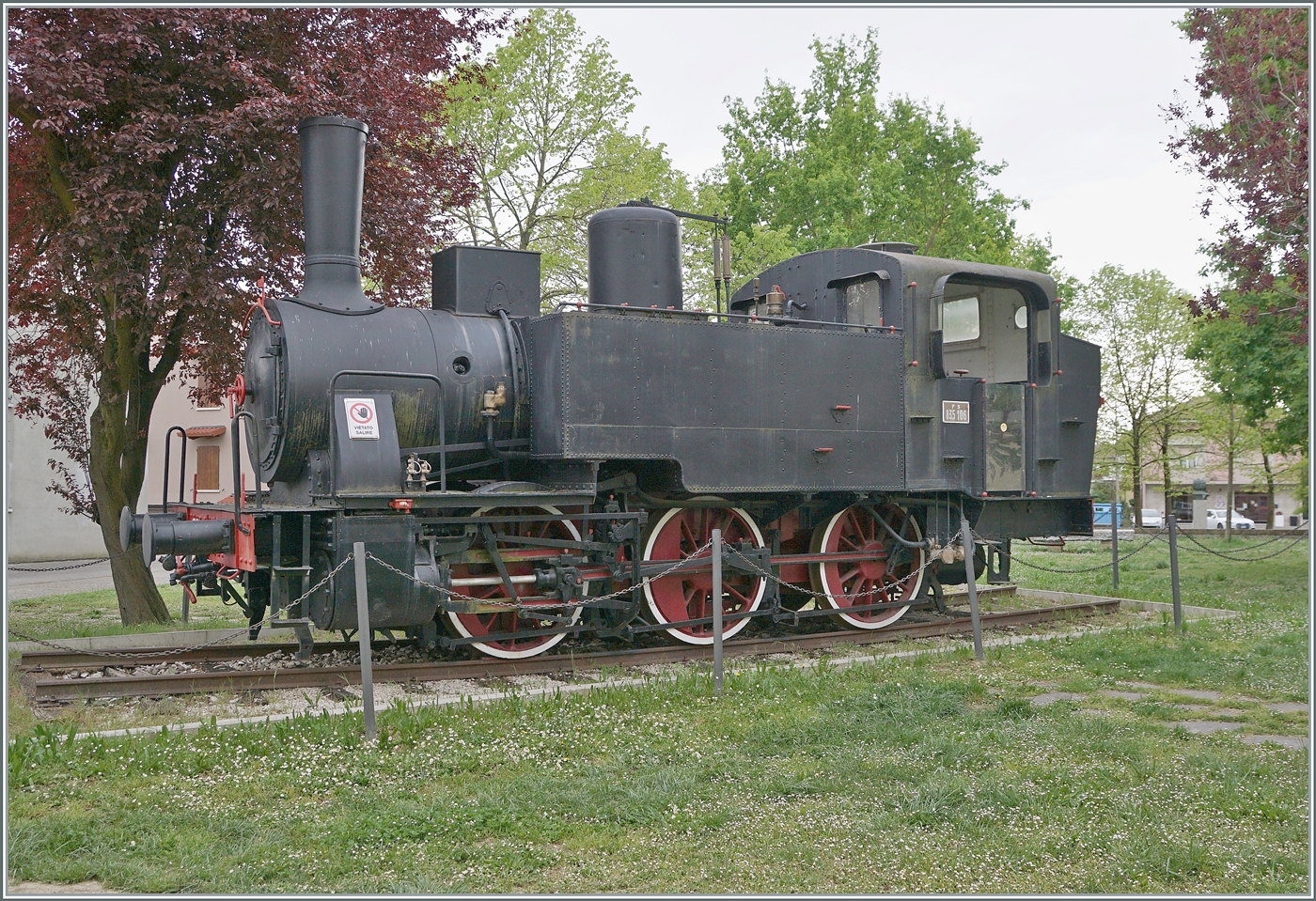 Leider mit Gegenlicht: 50 3673 schiebt ein FNM-Sonderzug aus Luino aus am 29 Mai 2019.