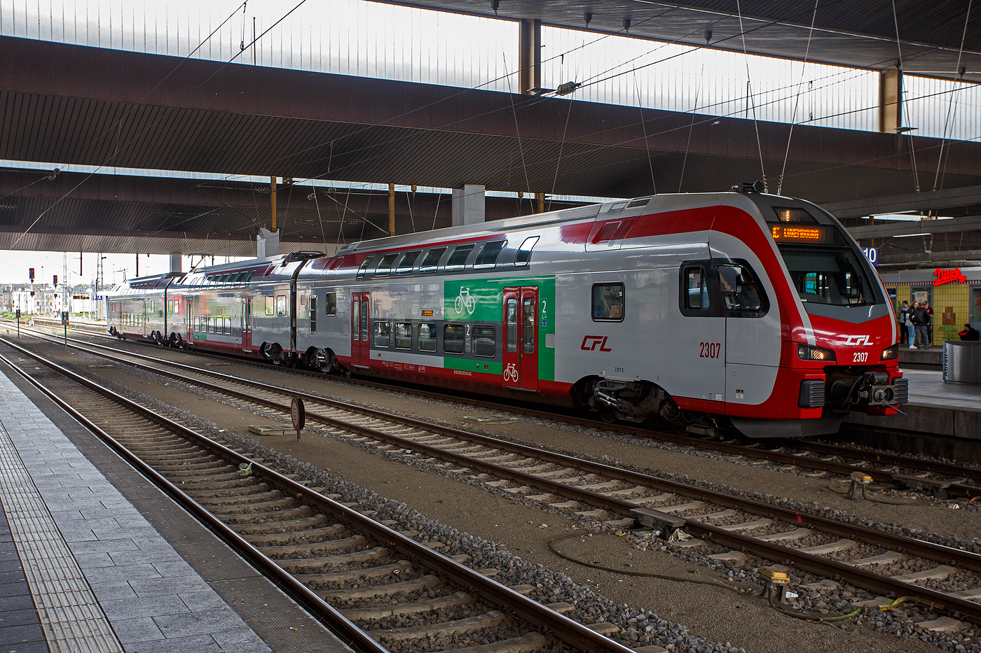 Endlich ist die neue Fotostelle in der Stadt Luxemburg zugänglich, Baustelle beendet, zusehen ist das neue 4 Gleisige Teilstück, rechts 2 Gleise in Richtung Wasserbillig Linie 60, links 2 Gleise in Richtung Troisvierges, Linie 10.