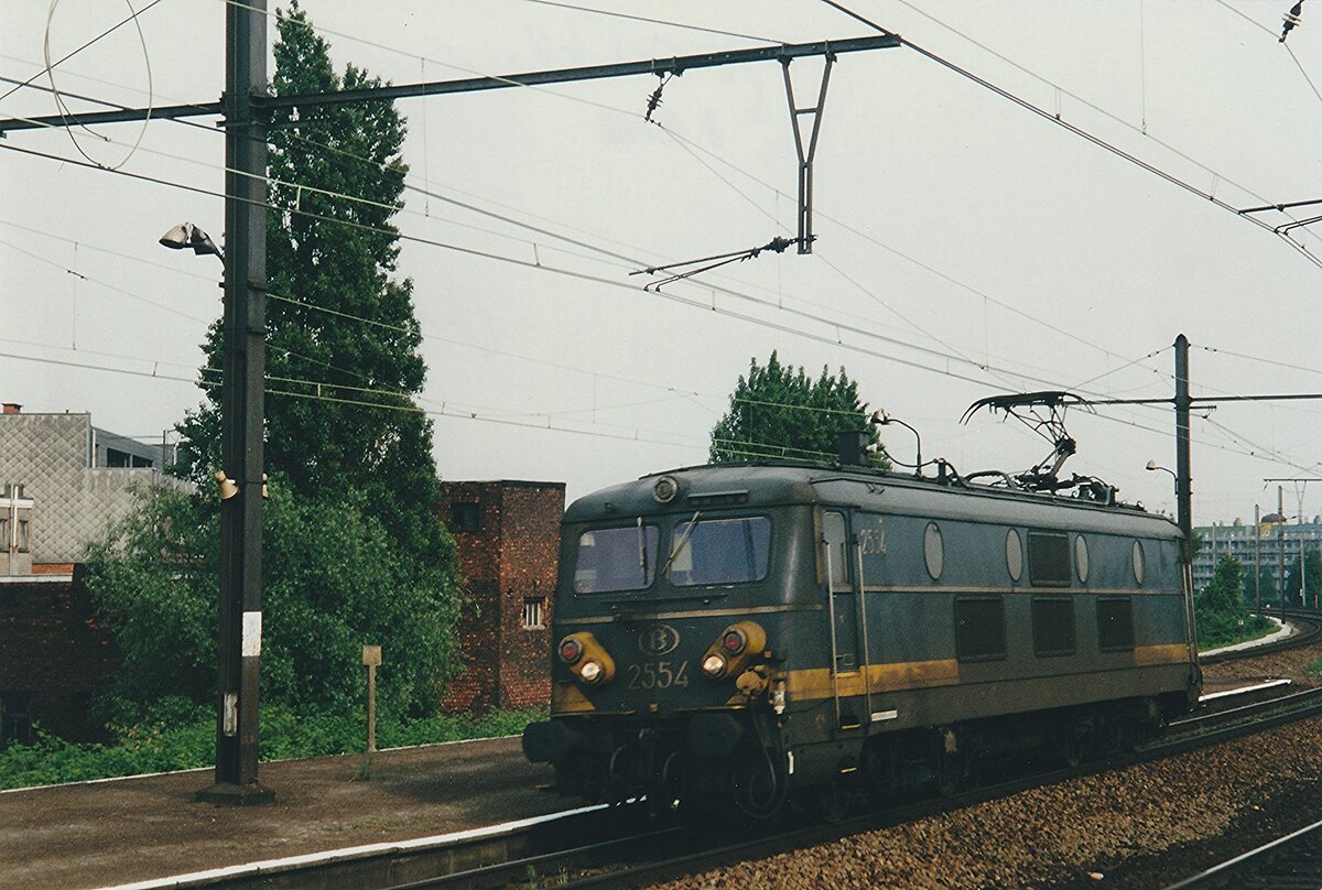 Am grauen 17 September 2004 durchfahrt NMBS 2554 solo Antwerpen-Berchem.
