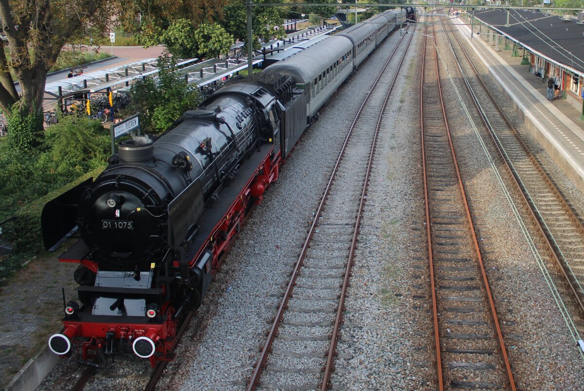 SSN 01 1075 steht am Schlüss den letzten Dampfpendelzuges von Terug naar Toen des Tages nach Beekbergen in Dieren am 6 September 2025.