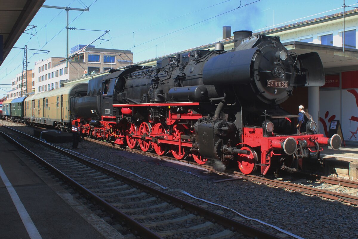 BEM's eigener Kriegslok 52 8168 steht am 17 September 2025 in Göppijngen während die Märklin-Tage und die DB Tage der Schienen... um der DB Tradition aufrecht zu halten kam es zum Grossstörung mit zeieinhalb Stünden ohne Zugverkehr zwischen Göppingen und Ulm Hbf..