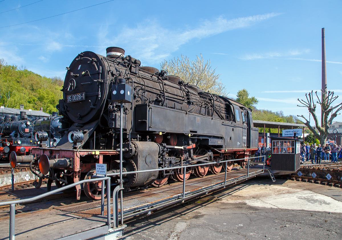 Die  Bergkönigin   95 0028-1, ex DR 95 028, am 30.04.2017 auf der Drehschiebe im DGEG Eisenbahnmuseum Bochum-Dahlhausen.