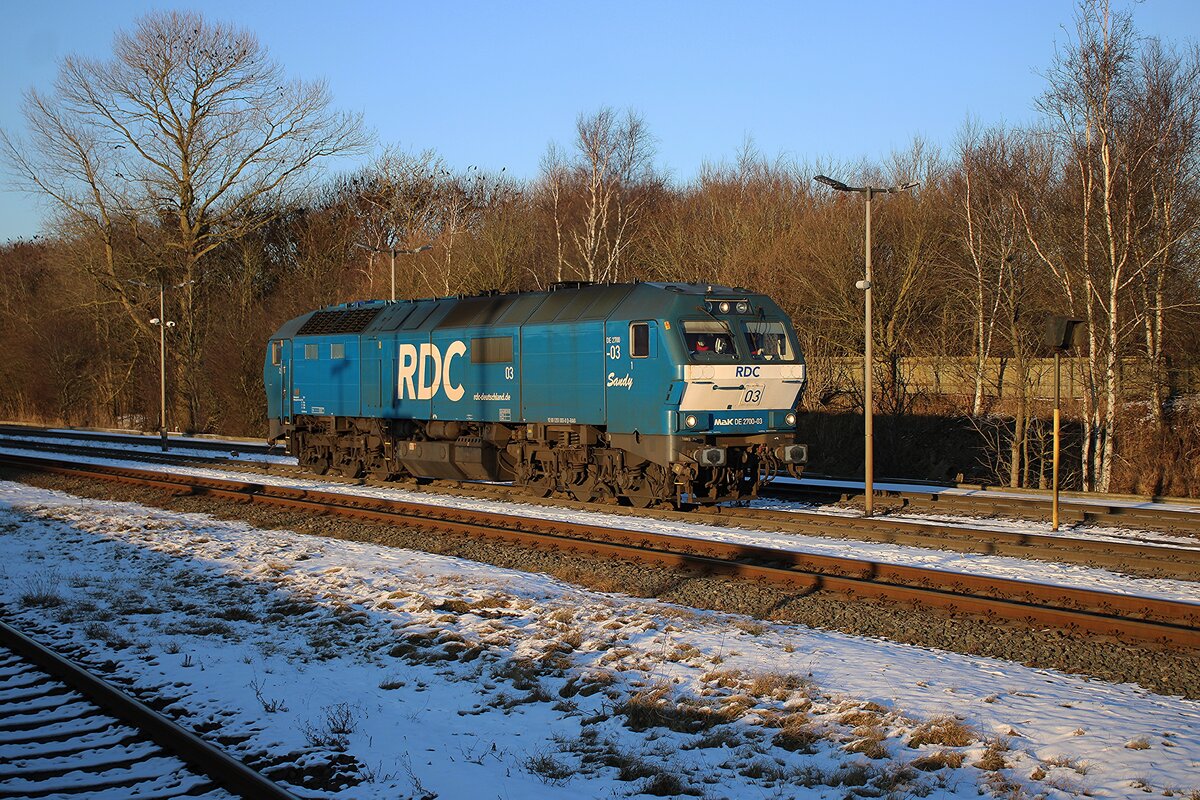 Es wird Abend am 21 September 2025 wann RDC 2700-07 mit der Syltshuttle in Niebüll eintreft.
