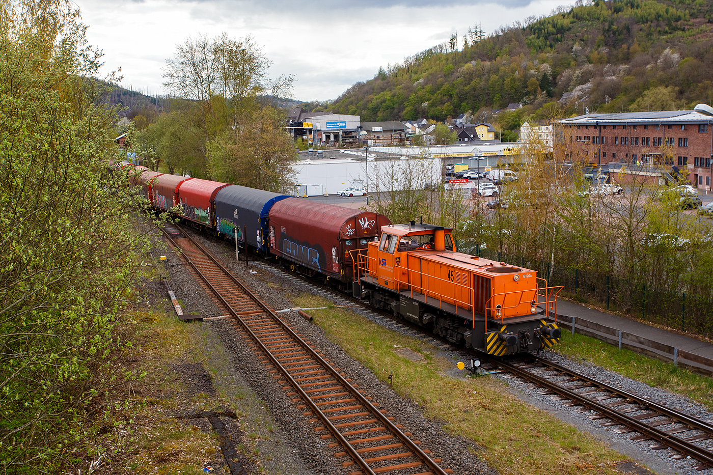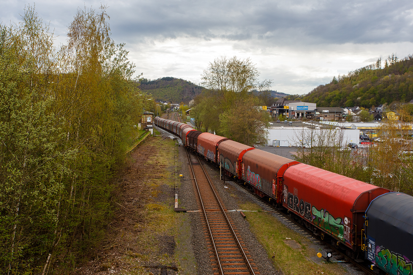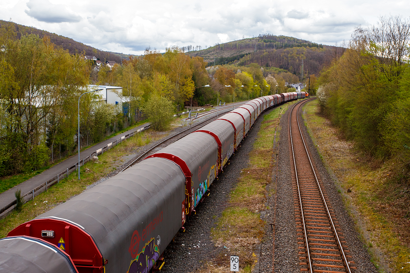 Die 294 718-2 (98 80 3294 718-2 D-DB), eine remotorisierte V 90 der DB Cargo AG fährt am 24.08.2021 mit einem Warmband-Coilzug vom Rbf Kreuztal nach Ferndorf.