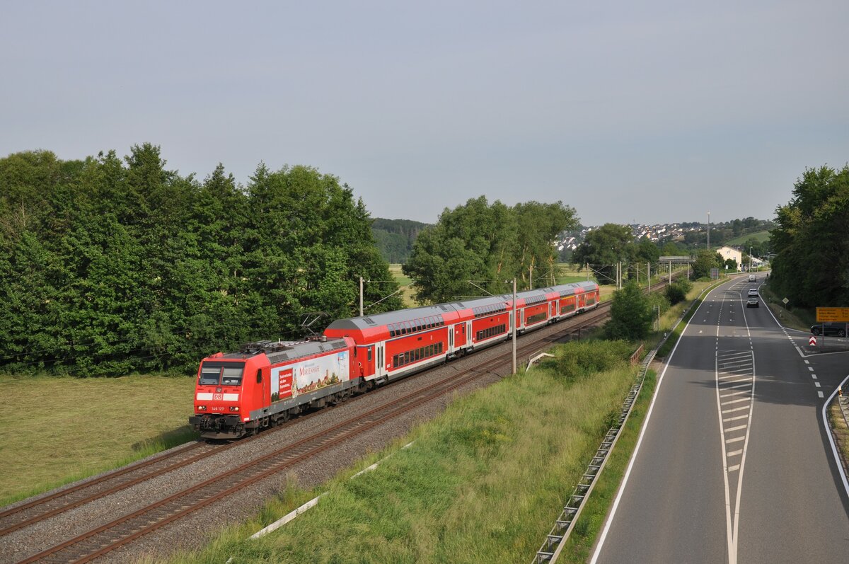 143 227 war am 19. Dezember 2020 als RB22 auf dem Weg von Limburg nach Frankfurt Hbf und wurde dabei beim BÜ in Niederbrechen aufgenommen.
