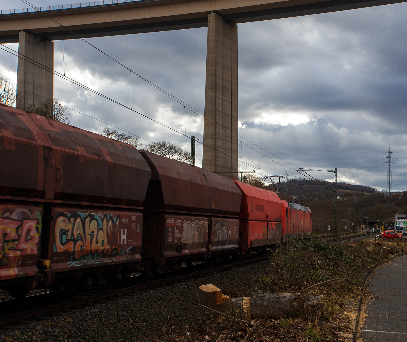 Ein Hohepunkt am meiner 1.Besuch an die Brücke bei Praest am 20 März 2024 war IGE 482 046 mit ein aus Emmerich von RRF ubernommener Kesselwagenzug. Es händelt sich hier um einer ex-SBB Cargo Ellok.
