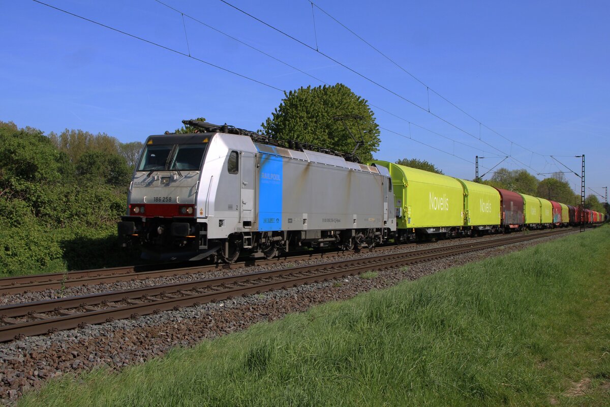 LIneas 186 258 zieht der Nievenheimer Stahlzug am 24 April 2026 durch Kaarst-Broicherseite.
