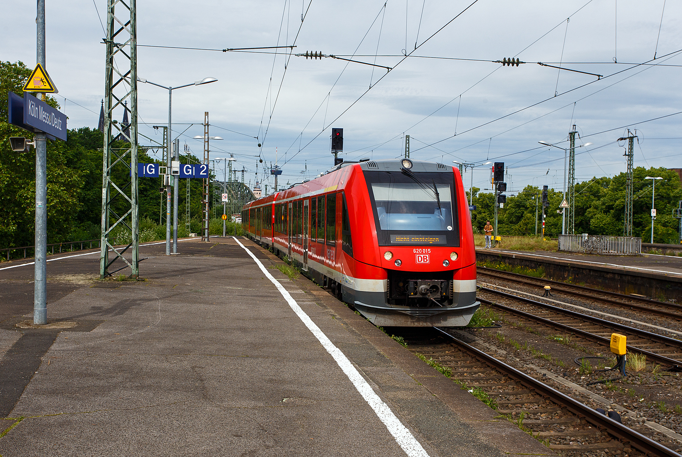 Der dreiteilige Dieseltriebzug ALSTOM Coradia LINT 81 – 620 505 / 621 005 / 620 005 der DB Regio NRW – vareo verlässt am 01 Juli 2025 auf Leerfahrt den Hauptbahnhof Köln und fährt in Richtung Köln Deutz bzw. Deutzerfeld. Nochmals einen lieben Gruß an den netten Tf zurück.