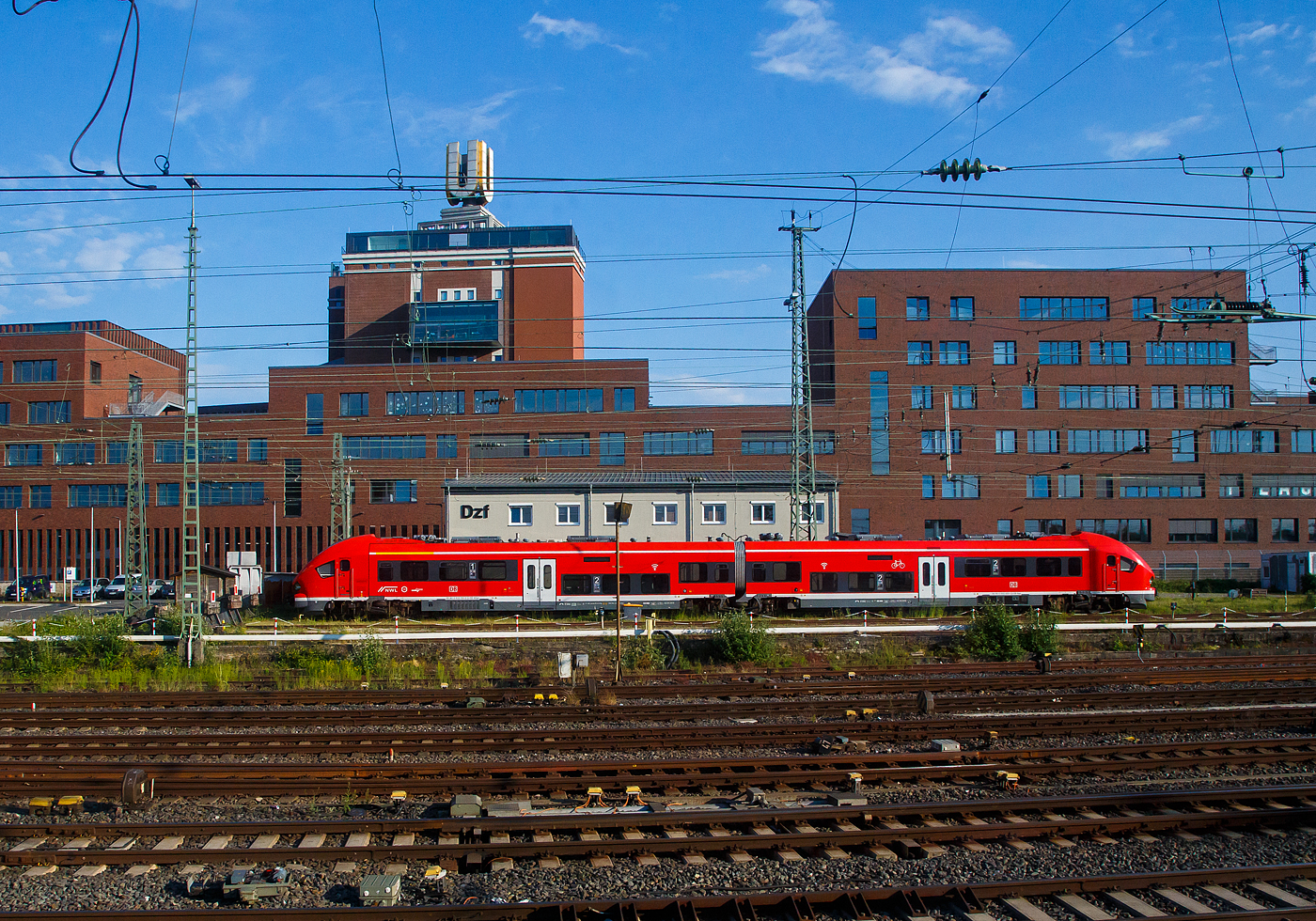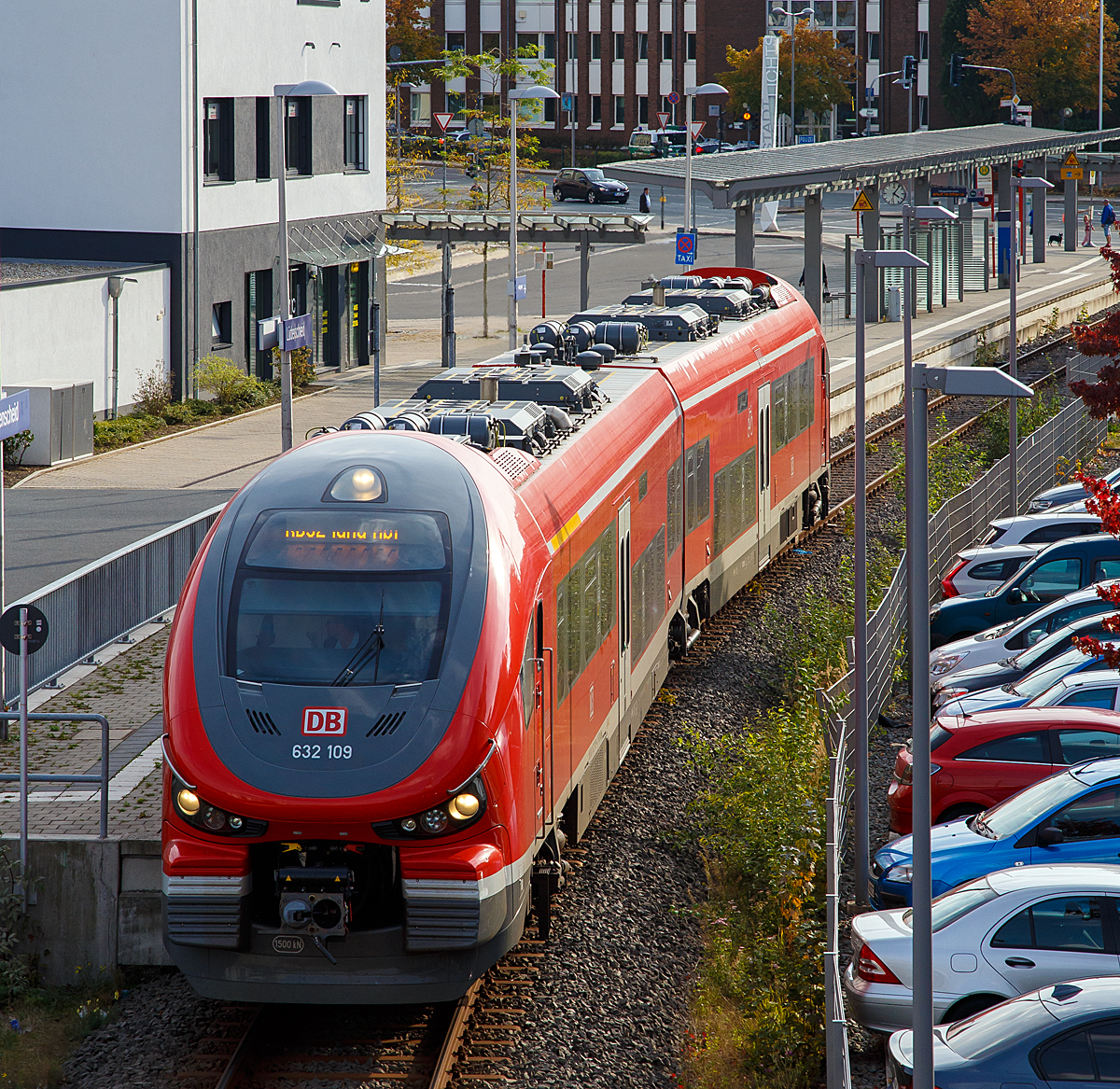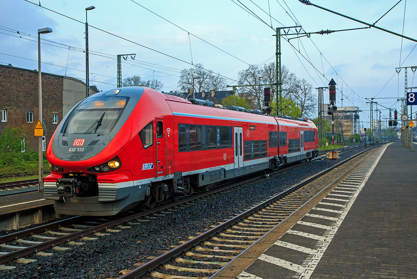 Der 632 033 / 632 533 ein Dieseltriebzug vom Typ Pesa Link II der DB Regio Mitte, fährt als RB 61 „Dreieichbahn“, am 17 April 2023 vom Bahnhof Frankfurt am Main Süd in Richtung Hauptbahnhof.