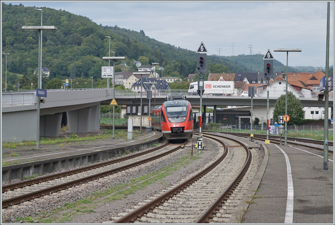 Der DB 644 058 erreicht als RB nach Lauchringen den Bahnhof von Waldshut. 6. Sept. 2023