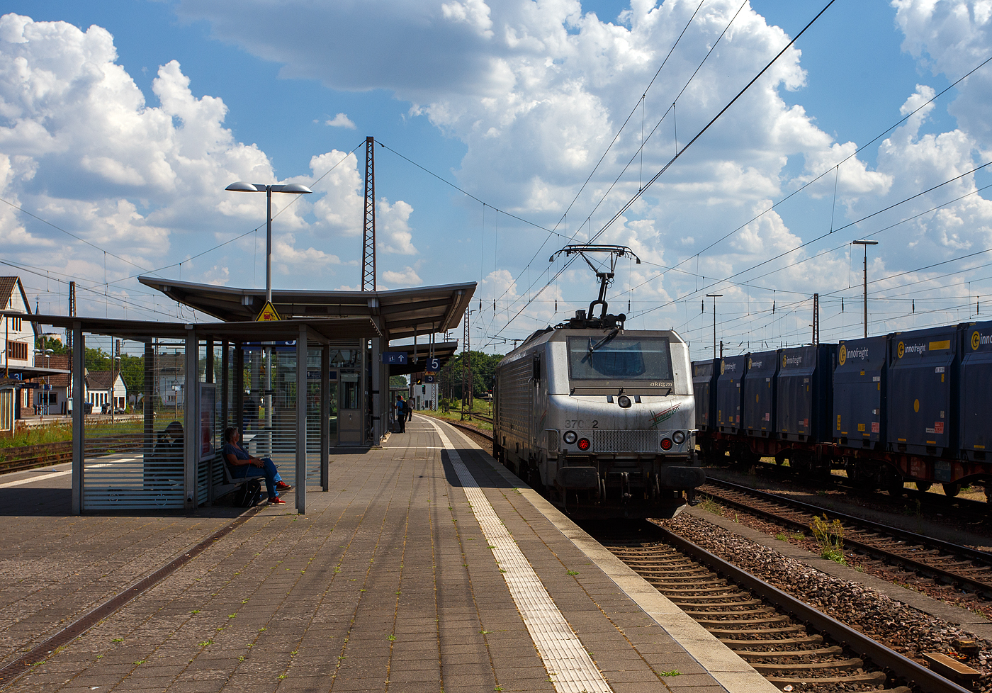 Die Alstom Prima BB 37020 (91 87 0037 002-5 F-AKIEM) der Akiem, ex Fret SNCF 437020, steht am 01 Juli 2025 beim Hauptbahnhof Koblenz und sonnt sich.