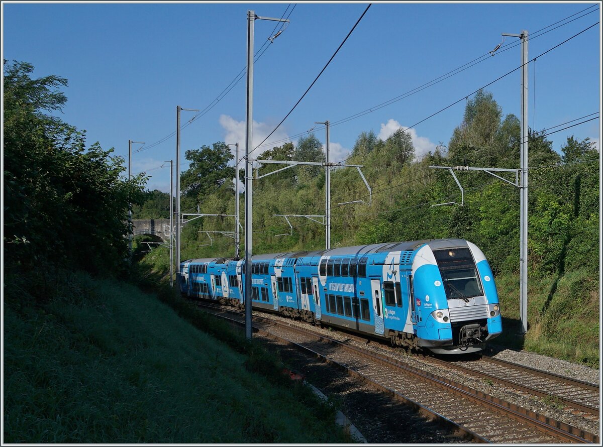 Die schöne, himmelblaue Computermaus ist von Grenoble nach Genève unterwegs und hat ihr Ziel schon fast erreicht. Der SNCF Z 24317, unterwegs als als TER 96605, konnte zwischen Russin und Satigny fotografiert werden.