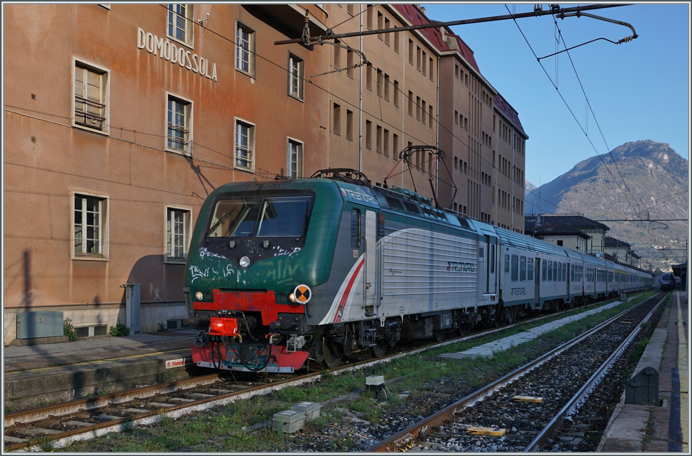 Seit vielen Jahren ein "Domodossola Klassiker": Auf Gleis 1 wartet ein "Locale" auf die Abfahrt nach Milano. Nun in all den vielen Jahren haben sie die Bezeichnungen für die Züge und die Züge selbst geändert, doch auch heute steht wieder ein "Locale" auf Gleis 1 und wartet auf die Abfahrt... Die Trenord 464 446 (91 83 2464 446-0 I-TN) wartet mit ihrem Regionale R2419 auf die Abfahrt nach Milano Centrale. 31. Okt. 2024