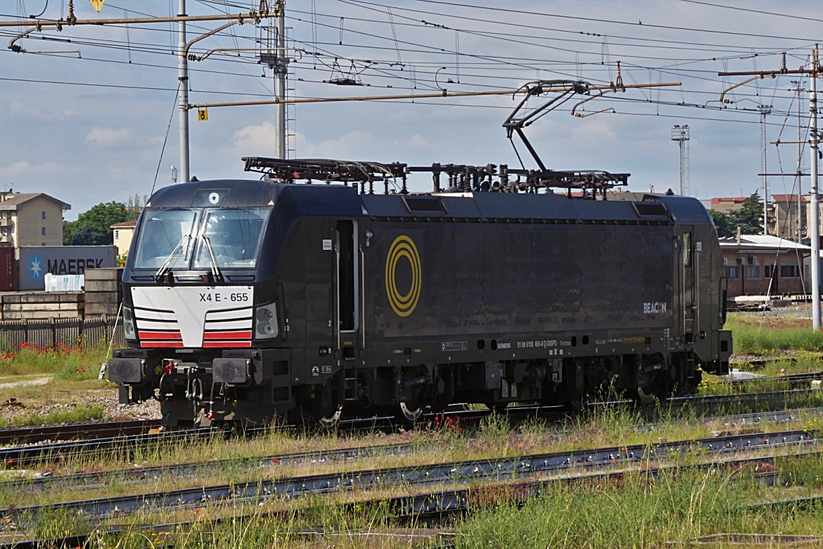 Lok 483 009 zieht einen Güterzug durch den Güterbereich am Bahnhof Verona Porta Nuovo vorbei. 09.05.2025
