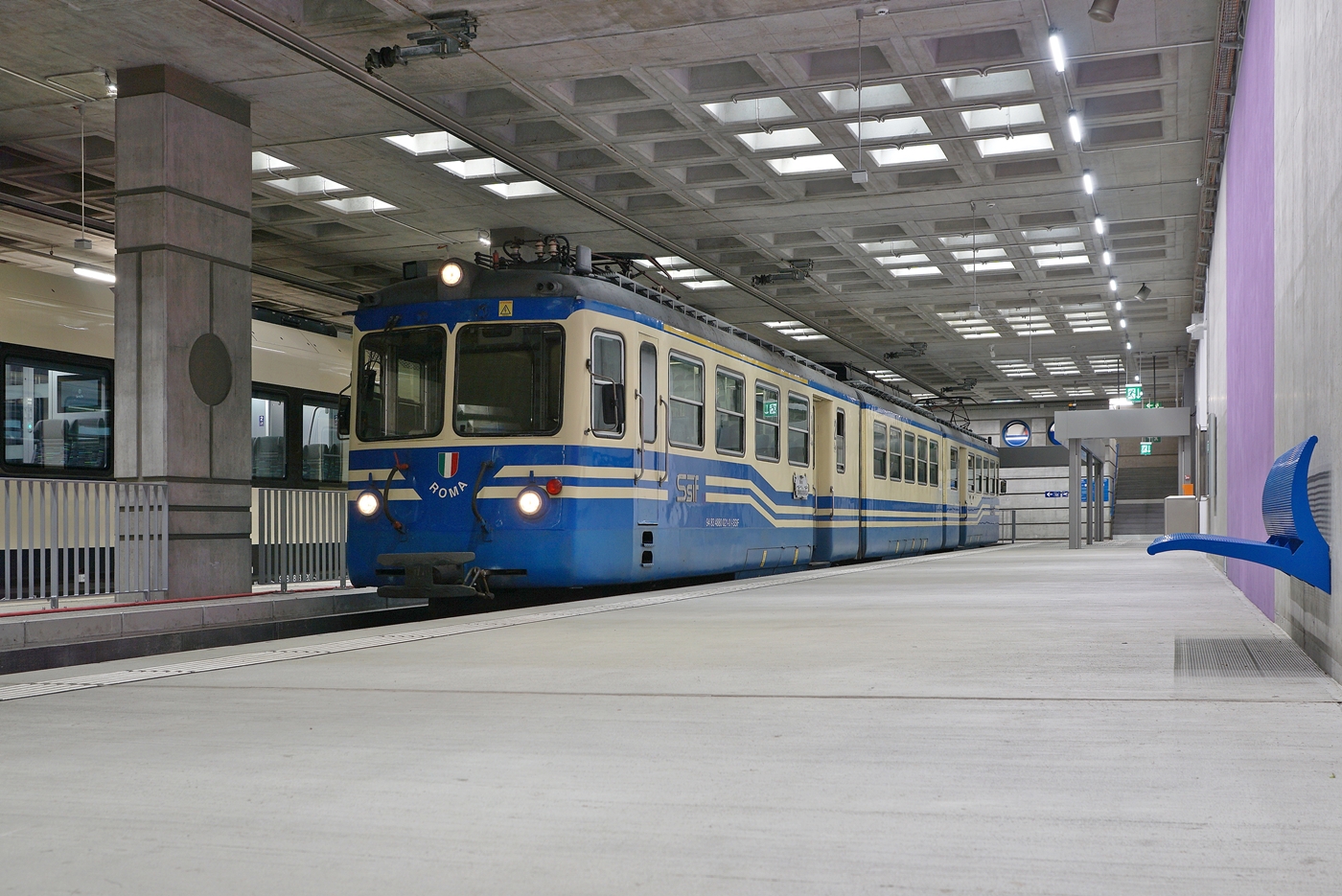 Der SSIF ABe 8/8 N° 21  ROMA  (UIC 94 83 4880 021-1 I-SSIF) wartet im Bahnhof Locarno FART als R73 136 auf die Abfahrt nach Domodossola. Durch die Ablieferung der neuen FART und SSIF Stadler Triebzüge dürften die Einsätze der aus den 1950er Jahre stammendem, typischen SSIF/FART Triebwagen wohl bald zu Ende gehen. 1. Oktober 2025