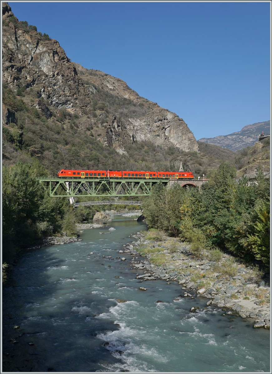 "Fine Line a 3000 Volt" steht an den Fahrleitungsmasten in Ivrea angeschrieben. Folglich verlässt der nun abgebügelte BTR 813 von Torion nach Aosta den Bahnhof mit thermischer Energie.