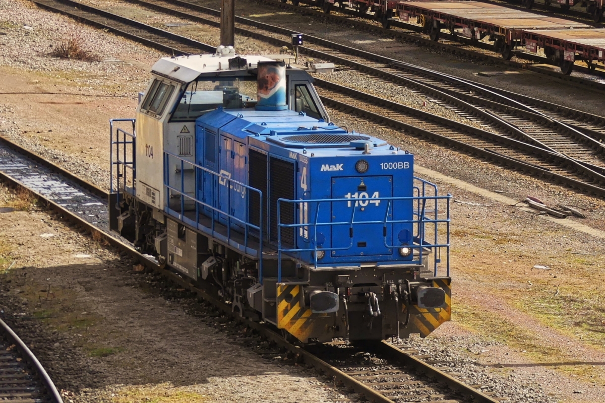 CFL Cargo, der Baureihe DE 18-300, schiebt einen mit Schrott beladenen Güterzug in die Abstellung beim VELO-DUCKT ein. 02.2025