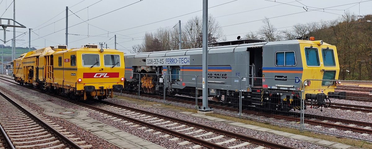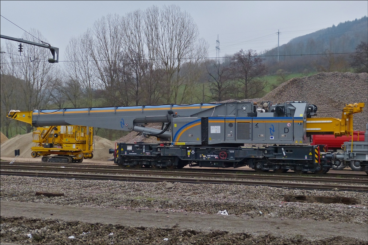 .Flachgüterwagen (9100 005-4) vom Typ Us mit der Standartbeladung von 2 Betonblöcken zu je 4,3 t, gehörend zum Gleisbaukran KRC 1200, steht im Bahnhofsareal von Ettelbrück. 20.05.2016.