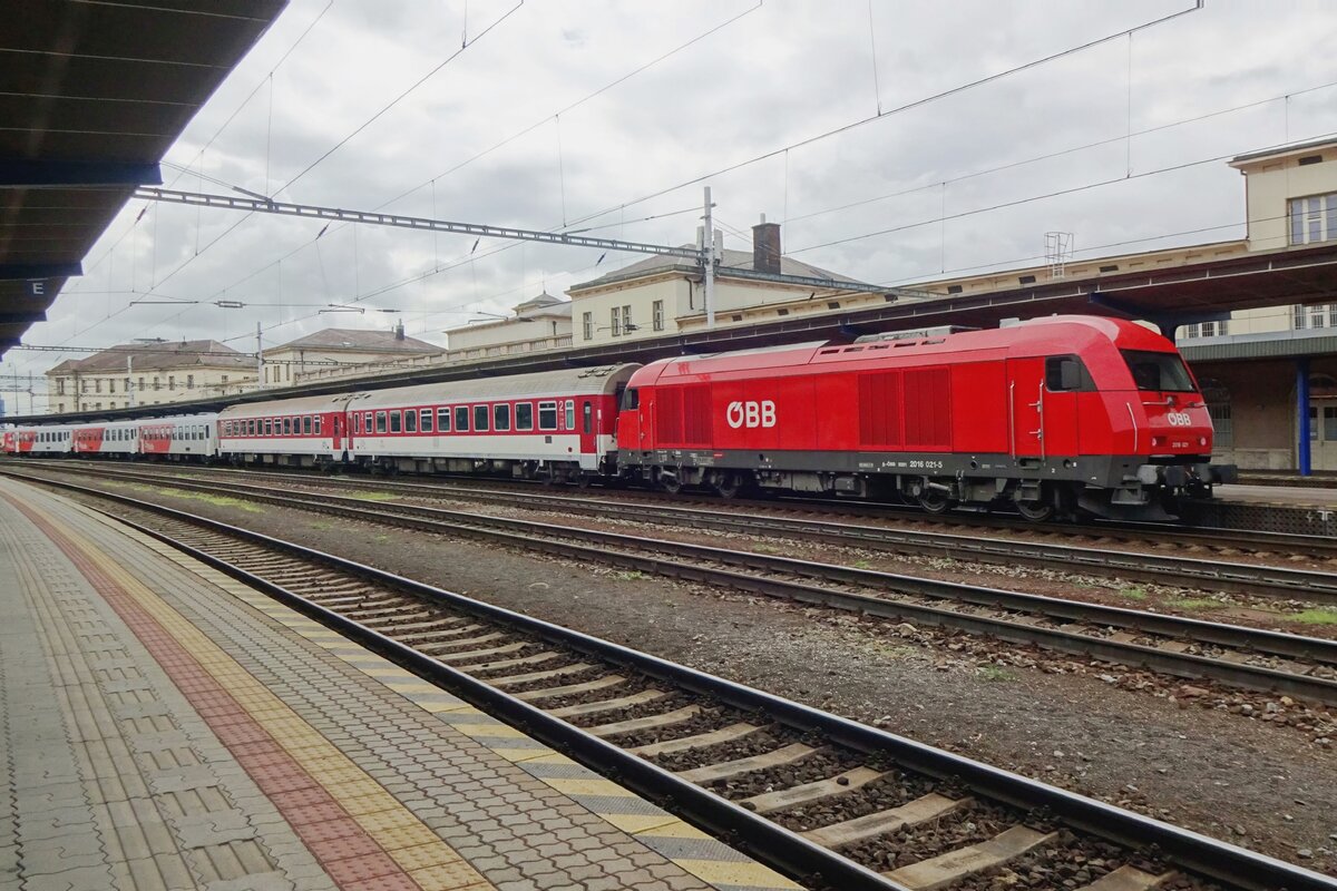 Am 26 Augustus 2021 treft ÖBB 2016 021 samt RE nach Wien Hbf in Bratislava hl.st. ein.
