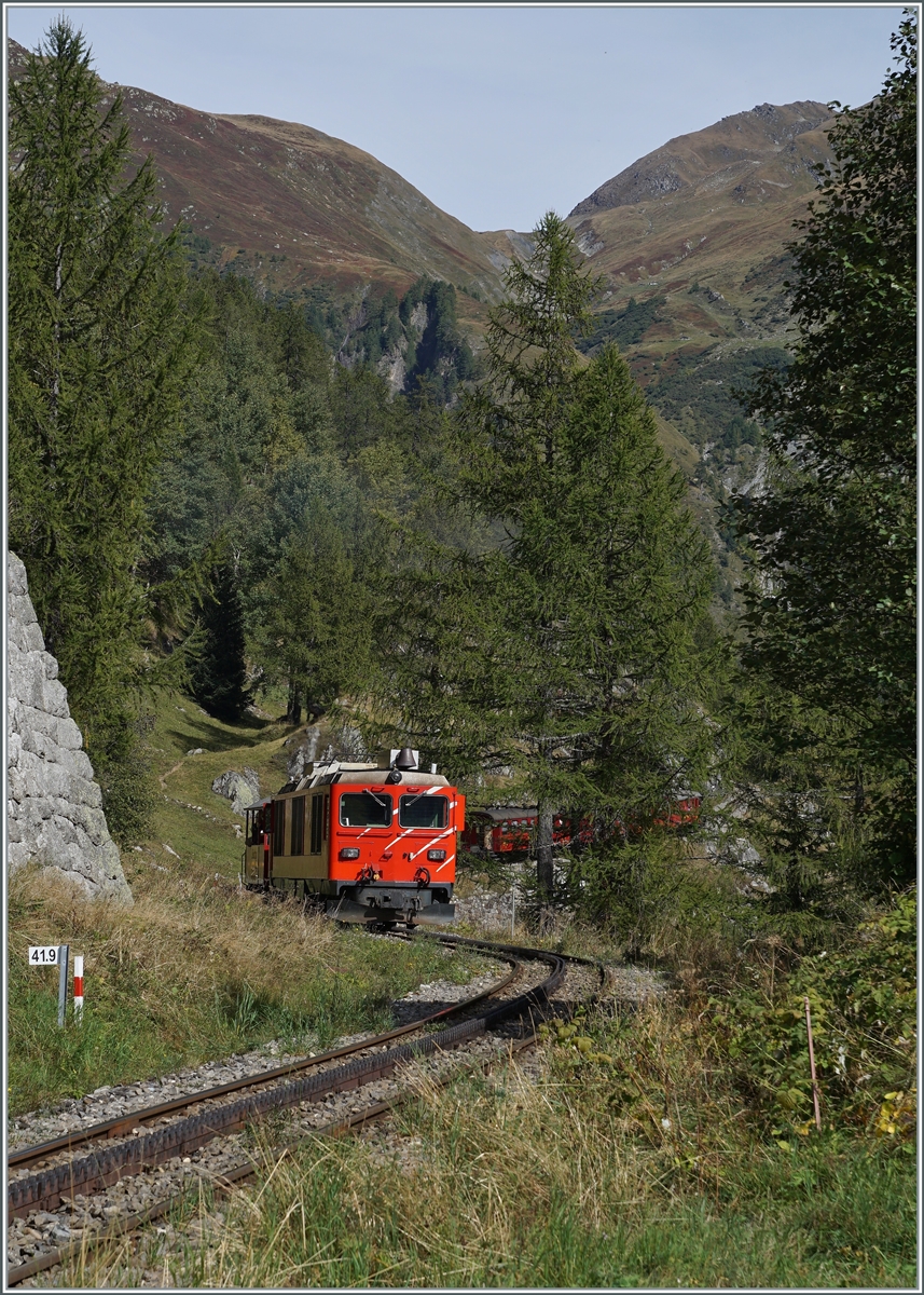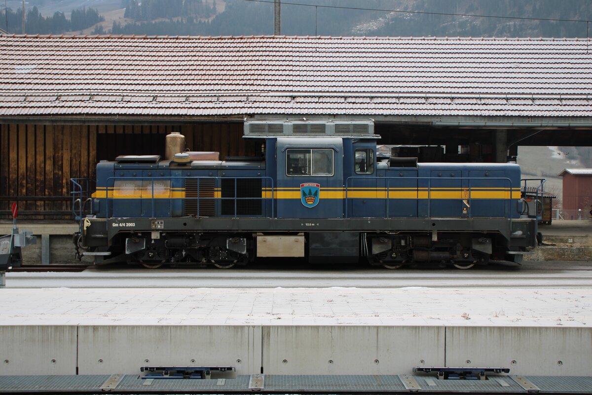 Die MOB Gm 4/4 2004 mit einem Bauzug in Blonay.