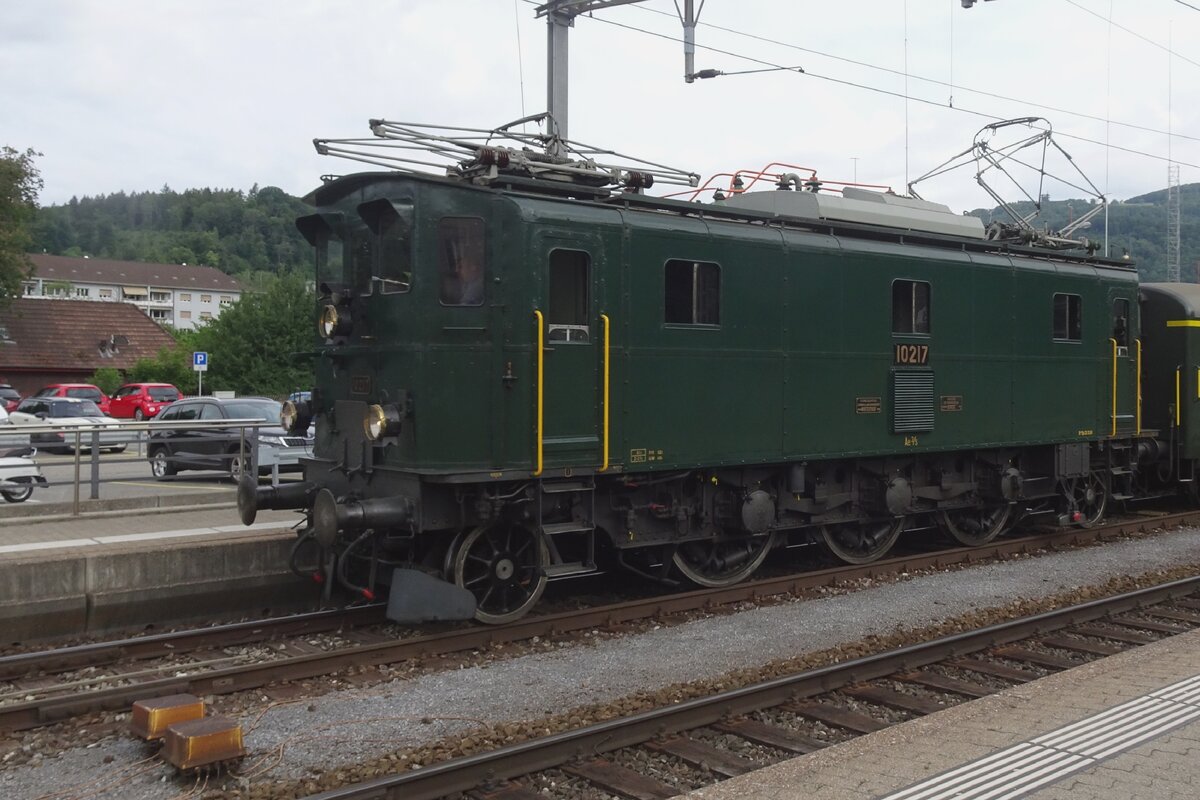 SBB Historic 10217 verlasst mit ein Pendelzug das SBB Werk Olten am 21 Mai 2022.