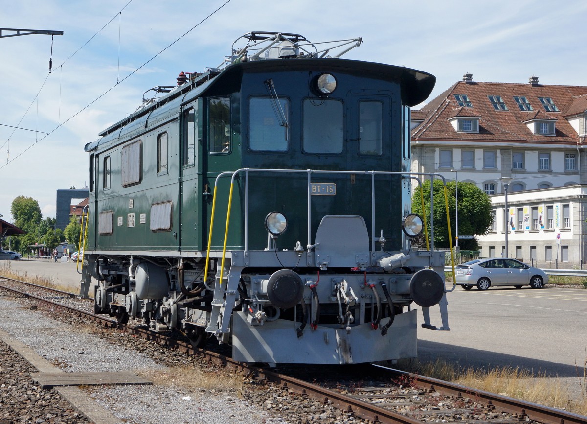 100 Jahre BLS: Te 2/3 31 der BLS und Be 4/4 102 der EBT am ersten verregneten Ausstellungstag (29.06.2013)