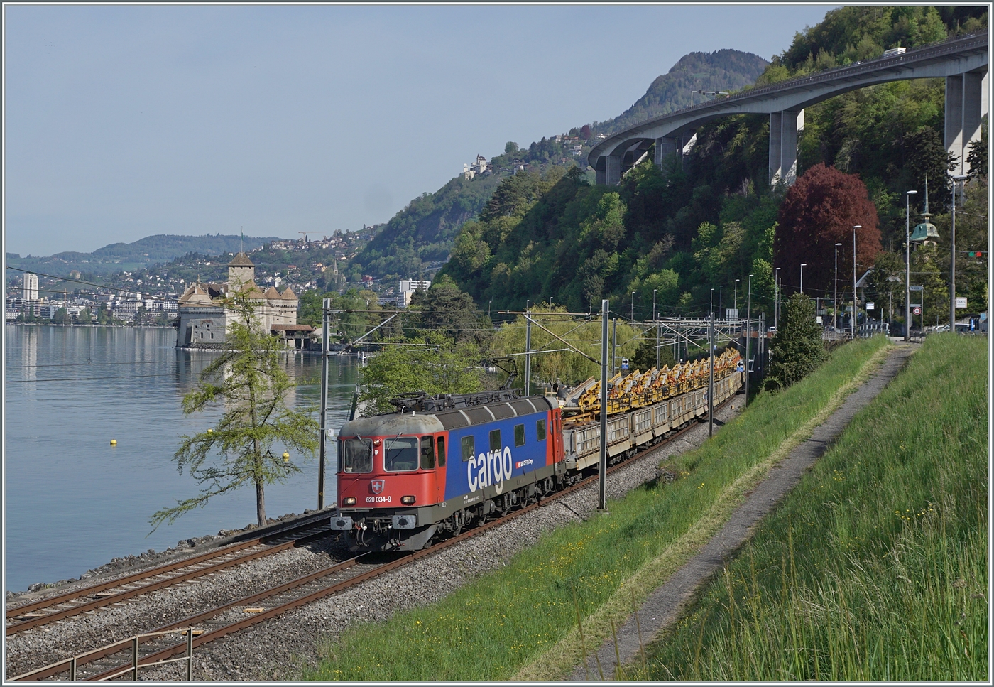 Die SBB Re 6/6 11613 (Re 620 013-3) "Rapperswil" kurz nach Villeneuve beim Château de Chillon als Lokzug auf der Fahrt in Richtung Lausanne.