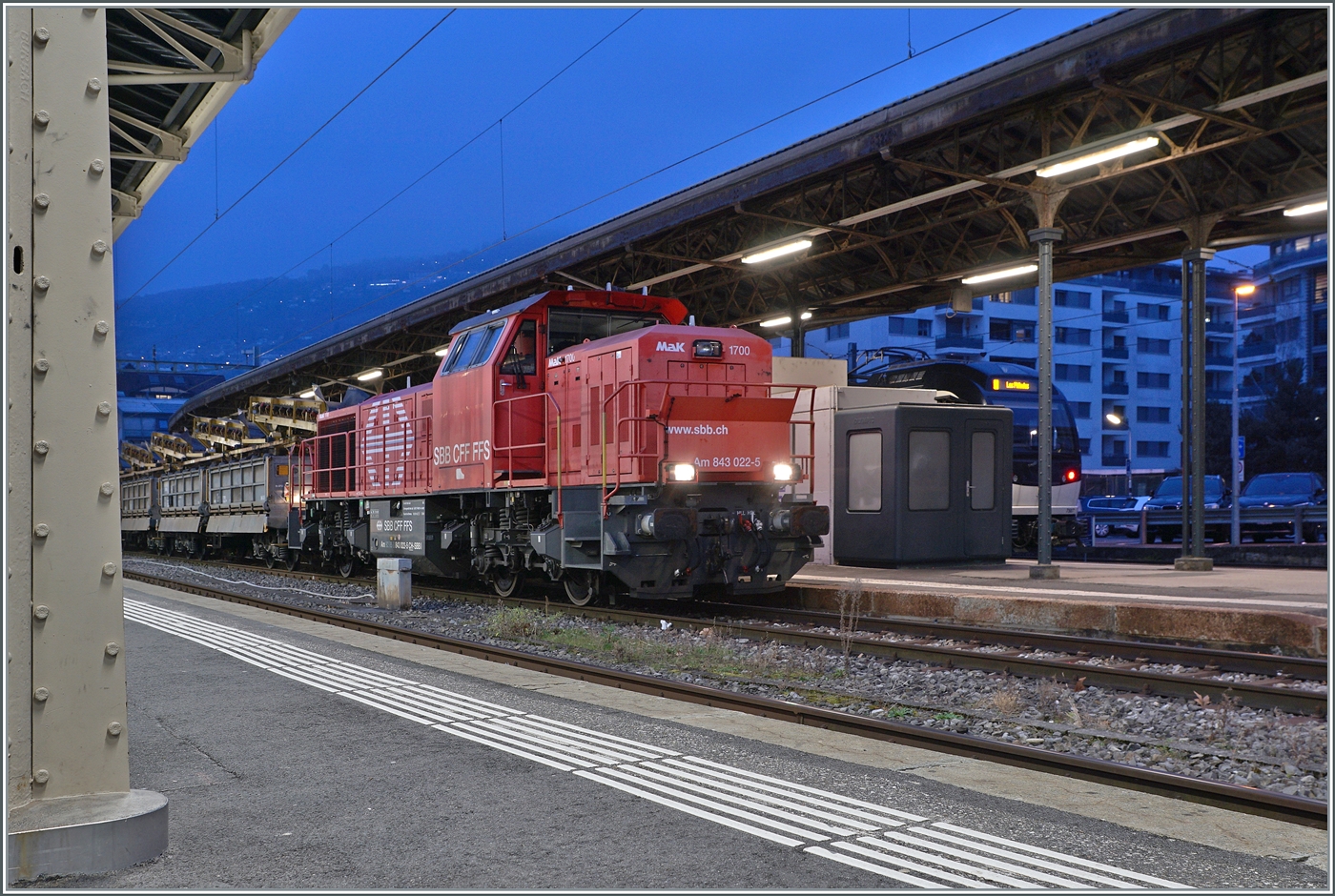 Nach der Revision ist der Bernina Bahn RhB ABe 4/4 I 35 der Blonay Chamby Bahn nun wieder im Einsatz; das Bild zeigt den Triebwagen bei seiner ersten Fahrt nach der Revision mit dem Riviera Belle Epoque kurz vor der Abfahrt in Vevey zurück nach Chamby. Erfreulicherweise ist der Zug ausschließlich mit RhB Fahrzeugen zusammengestellt worden.