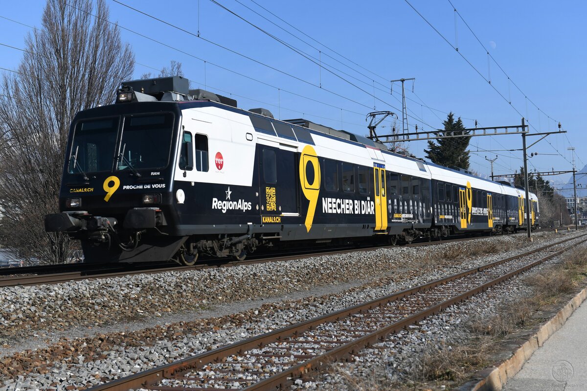 2025.02.06 SBB CFF FFS RegionAlps.Sion Rame Domino RBDe 560 RA 414 Arbore une livrée publicitaire pour la télé régional [Canal9]