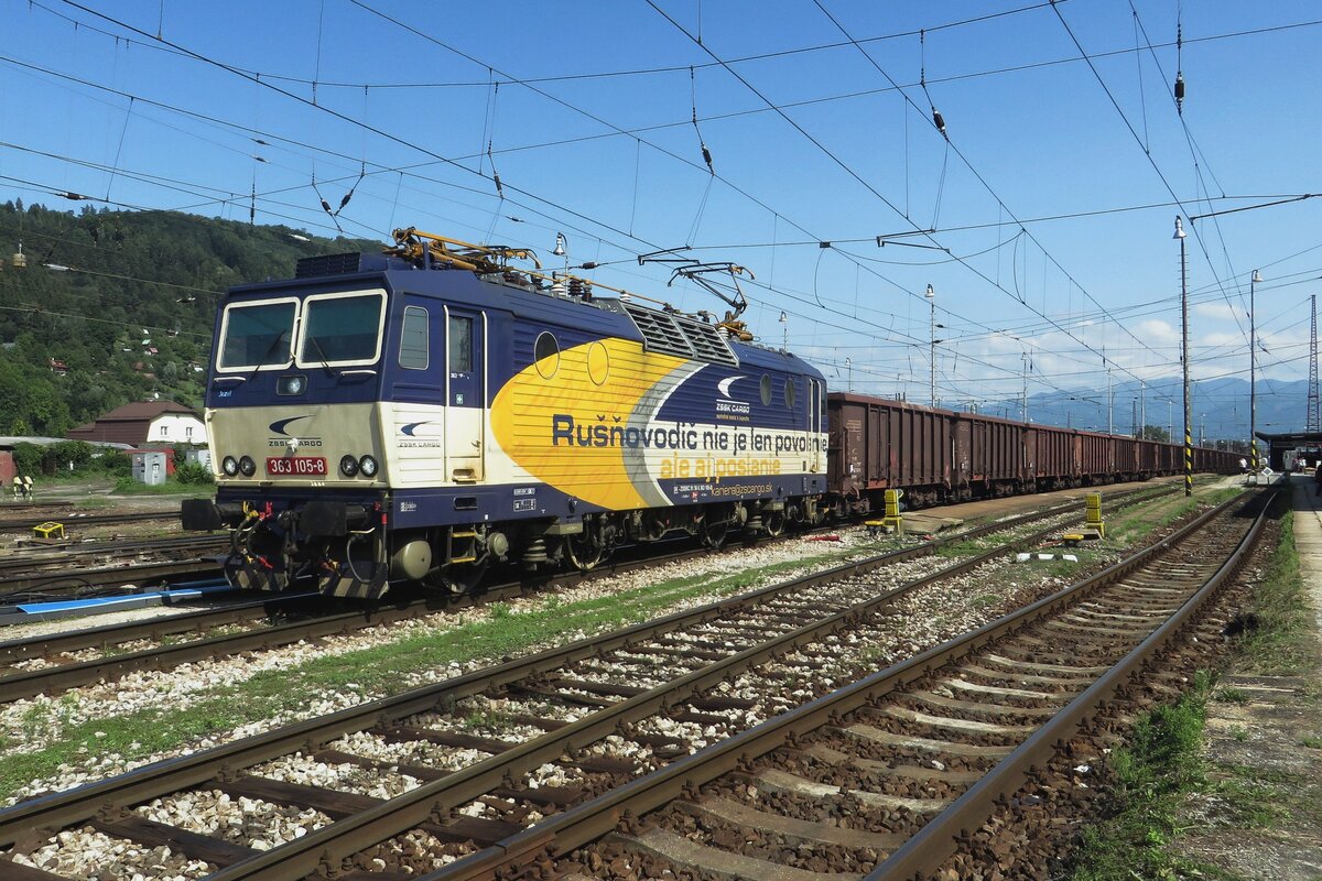 ZSSK Cargo 363 105 treft am 25 Augustus 2021 mit ein Leerkohlezug in Zilina ein.