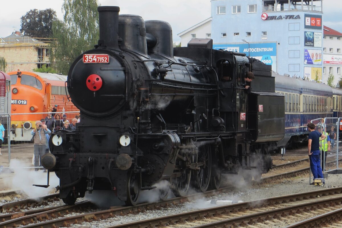 Dampflok 354 7152 steht am 13 Mai 2012 ins Eisenbahnmuseum in Luzna u Rakovnika.
