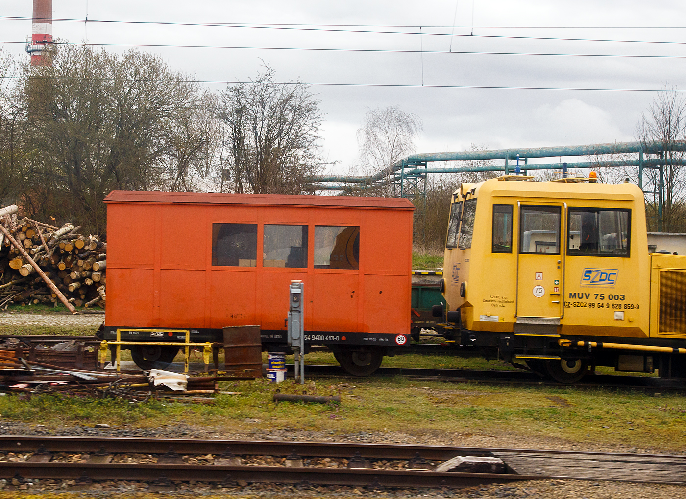 Die SIEMENS Vectron MS (X4E) - 193 901-6 (91 80 6193 901-6 D-SZDC) vom tschechischen Eisenbahninfrastrukturunternehmen Správa ¸eleznic (S´CZ) steht am 24.11.2022, mit dem Gleismesswagen CZ-SZCZ 99 54 93-62 005-9, bei Karl¨tejn (deutsch Karlstein, zum Bezirk Beroun). Die Vectron ist in Deutschland eingestellt und wird von der Správa ¸eleznic vorwiegend vor Messzügen eingesetzt.