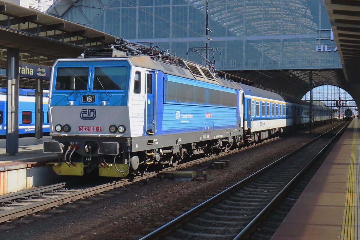 Der „Regionova“ 814 045-1/ 914 045-0 (CZ ČD 95 54 5 814 045-1/ CZ ČD 95 54 5 914 045-0), ein Dieseltriebwagen mit Niederflurbereich der tschechischen České dráhy (ČD), steht am 21 April 2023 in Karlovy Vary dolní nádraží (Karlsbad unterer Bahnhof), als Os 17106 nach Johanngeorgenstadt (Sachsen) via Karlovy Vary, Nejdek und Potucky, zur Abfahrt breit. Aber noch sind die Türen verschlossen. Die Fahrzeuge der ČD-Baureihe 814/914 entstanden im Rahmen eines Rekonstruktionsprogrammes (2005 bis 2012) aus den Fahrzeugen der ČD-Baureihe 810,ex ČSD M 152.0 ""Chcípák"" (Brotbüchse). Von den ČD werden sie als „Regionova“ vermarktet. Die Achsfolge 1'A' + 1'1 (jeweils zweiachsiger Trieb- und Steuerwage) merkt man als Fahrgast sehr. Technische Merkmale: Wesentliche Veränderungen gegenüber der Ursprungsbauart sind eine neue, leistungsfähigere Antriebsanlage mit dem Dieselmotor TEDOM M1.2C ML 640SE (ehemals LIAZ), welcher unter dem Wagenboden untergebracht ist. Es handelt sich um einen Viertakt-Reihen-6-Zylinder-Dieselmotor mit Turbolader und Ladeluftkühler. Jeder Zylinder hat zwei Einlass- und zwei Auslassventile und eine Einspritzdüse. Die Kraftstoffeinspritzung erfolgt direkt; es wird von einer elektronisch gesteuerten Einspritzpumpe bereitgestellt. Die Ventile werden von einer einzigen Nockenwelle angetrieben. Der Ventiltrieb ist vom Typ OHV (überhängende Ventile). Die Abgase werden durch das Auspuffrohr auf das Dach des Fahrzeuges geleitet. Der Verbrennungsmotor erfüllt die EURO II-Emissionsgrenzwerte. Die Motorkühlung wird wie Wasser gehandhabt – die Kühlung des Motorkreislaufs und des Getriebes erfolgt über einen Aluminiumkühler der Firma AKG. Der Kühlerlüfter wird hydrostatisch angetrieben. Die Schmierung des Verbrennungsmotors erfolgt durch unter Druck stehendes Öl. Die Kraftübertragung vom Dieselmotor erfolgt über ein hydromechanisches Getriebe VOITH DIWA 864.3E auf die Achse. Zudem wurde eine bequemere Innenausstattung mit behindertengerechter Toilette, bessere Arbeitsbedingungen für den Lokführer, bessere Fahreigenschaften und geringere Umweltauswirkungen der Antriebsanlage erreicht. Die Regionova sind nach wie vor mit Schraubenkupplung ausgerüstet und somit mit anderen Fahrzeugen freizügig kuppelbar. Im Steuerwagen, der zwischen den Radsätzen einen Niederflurbereich auf etwa 50 % der Wagenlänge aufweist, befinden sich das Traglastenabteil, eine Auffahrrampe für Rollstühle, die Toilette und 34 Sitzplätze. Der Einstieg liegt in diesem Bereich in Wagenmitte. Der Triebwagen, in normaler Bodenhöhe aufgebaut, besitzt Fahrgastabteile mit 50 Sitzplätzen. Die Antriebsanlage liegt wie bei der Ursprungsbauart unter dem Wagenboden, auch die Lage der Einstiege wurde bei den Triebwagen nicht verändert. Neben der Baureihe 814.0 wurden ab 2007auch Fahrzeuge zur dreiteiligen (Trio) Baureihe 814.2 umgebaut. Eine solche Einheit besteht dann aus zwei Motorwagen und einem Mittelwagen. Die dreiteiligen Züge bieten 135Sitzplätze anstatt bei den zweiteiligen Wagen 84. TECHNISCHE DATEN der BR 814.0/914.0 (zweiteilig / Duo): Hersteller: BR 810 Vagónka Studénka (heute Škoda Vagonka a.s.) Umbau: Pars Nova a.s. in Šumperk (heute auch Škoda) Spurweite: 1.435 mm (Normalspur) Achsfolge: 1'A' + 1'1 Länge über Puffer: 28.440 mm Leergewicht: 39.6 t Radsatzfahrmasse: 9,75 t Motorentyp: 1x TEDOM M1.2C ML 640SE (ehemals LIAZ) Motorhubraum: 11.946 Liter (Bohrung 130 mm / Hub 150 mm) Installierte Leistung: 242 kW bei 1.950 U/min Getriebe: Voith Diwa 864.3E Leistungsübertragung: hydromechanisch Anfahrzugkraft: 54 kN Höchstgeschwindigkeit: 90 km/h Sitzplätze: 84 Stehplätze: 105 Fußbodenhöhe: 570 mm (Niederflurteil)